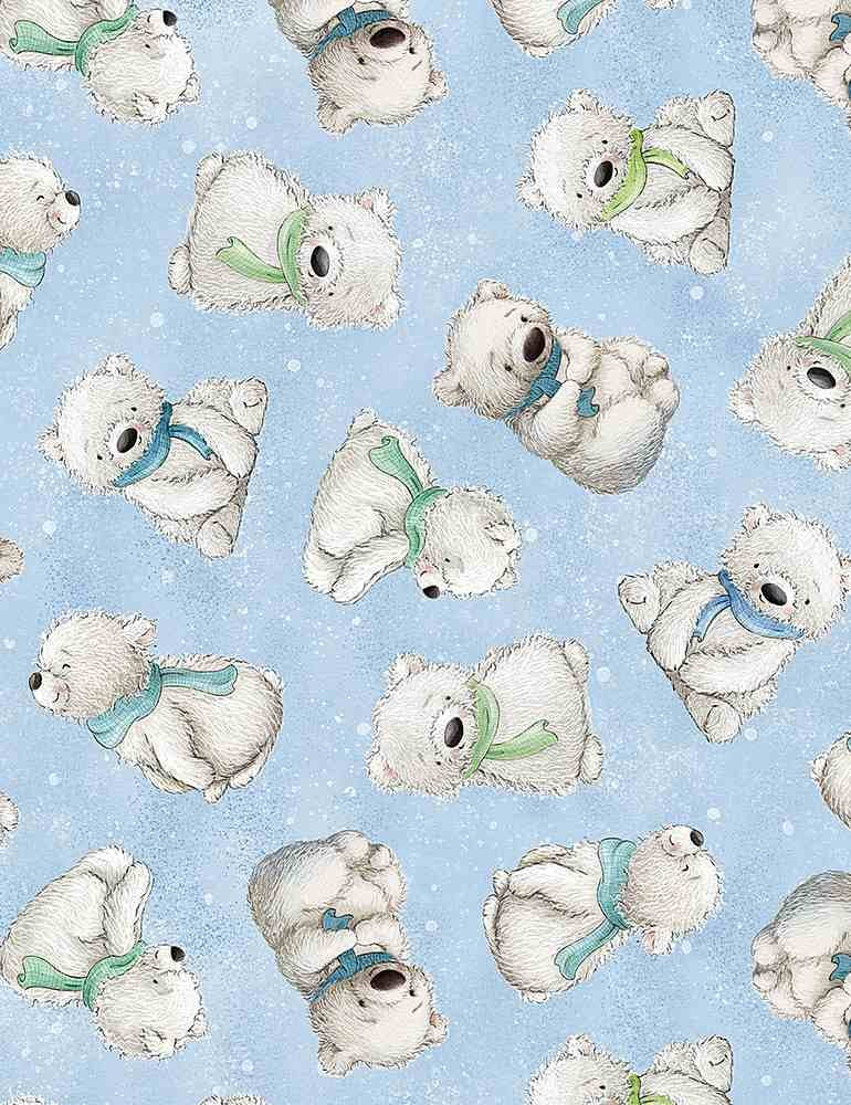 Arctic Night Tossed Polar Bear Sky Cotton Fabric